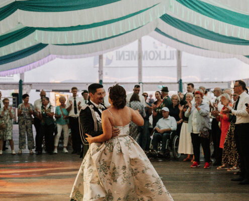 Während die Vereine dem Thron gratulierten, kam man sich bei Kaffee und Kuchen mit seinem Gegenüber ins Gespräch und die kleinen Gäste konnten sich die Zeit beim Kinderkarussell und bei der Kinderbetreuung der Pfadis vertreiben, sowie am Abend auf der Kinderdisco die Energie raus lassen. Nachdem der DJ erst den Kindern eingeheizt hatte, wurde nach einem Rosentanz für das Königspaar noch lange weiter gefeiert.